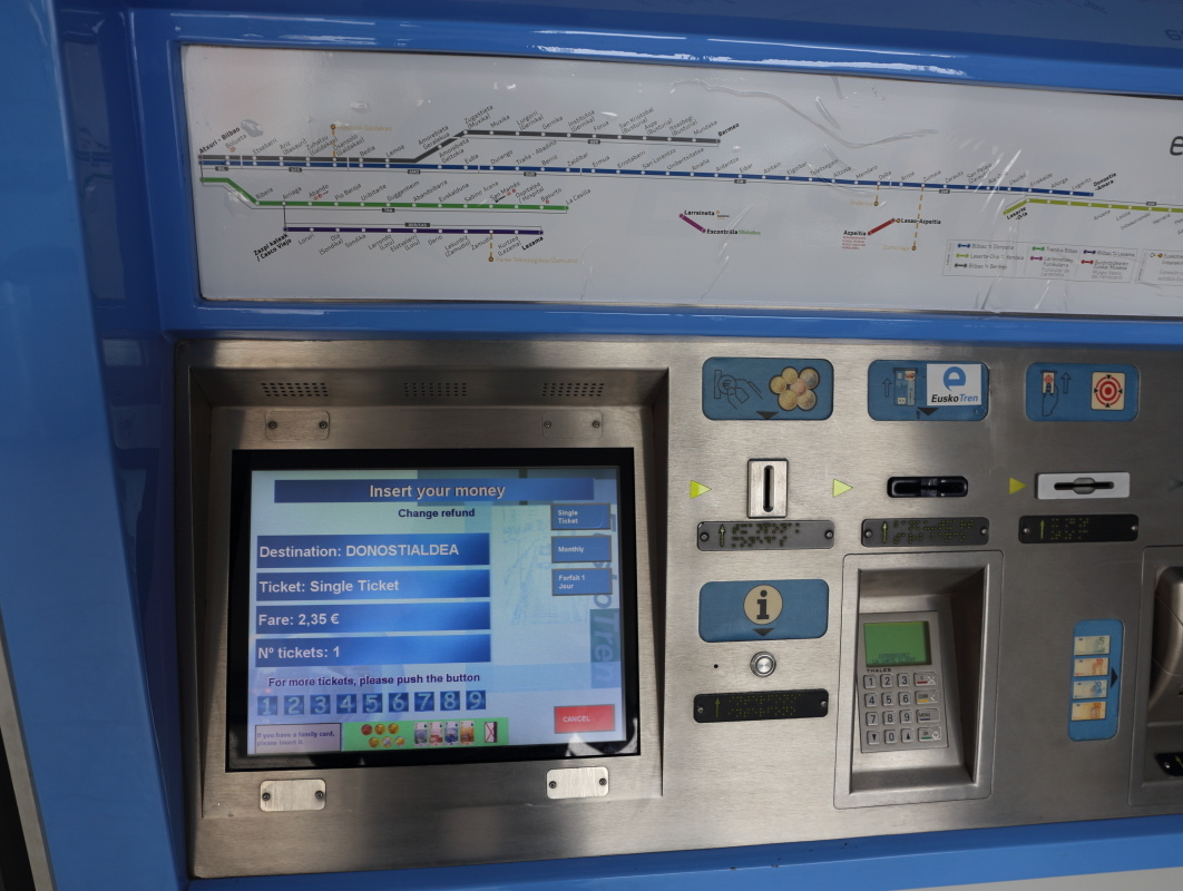 なお、ビルバオ空港は現地では「AEROPUERTO LOIU」と呼ぶため、バスの時刻表を見るときには「LOIU」という文字を探してもらいたい。また同様に、サン・セバスティアンは現地語で「DONOSTIA」というので、サン・セバスティアンと表記されていないときには「DONOSTIA」を探すこと。